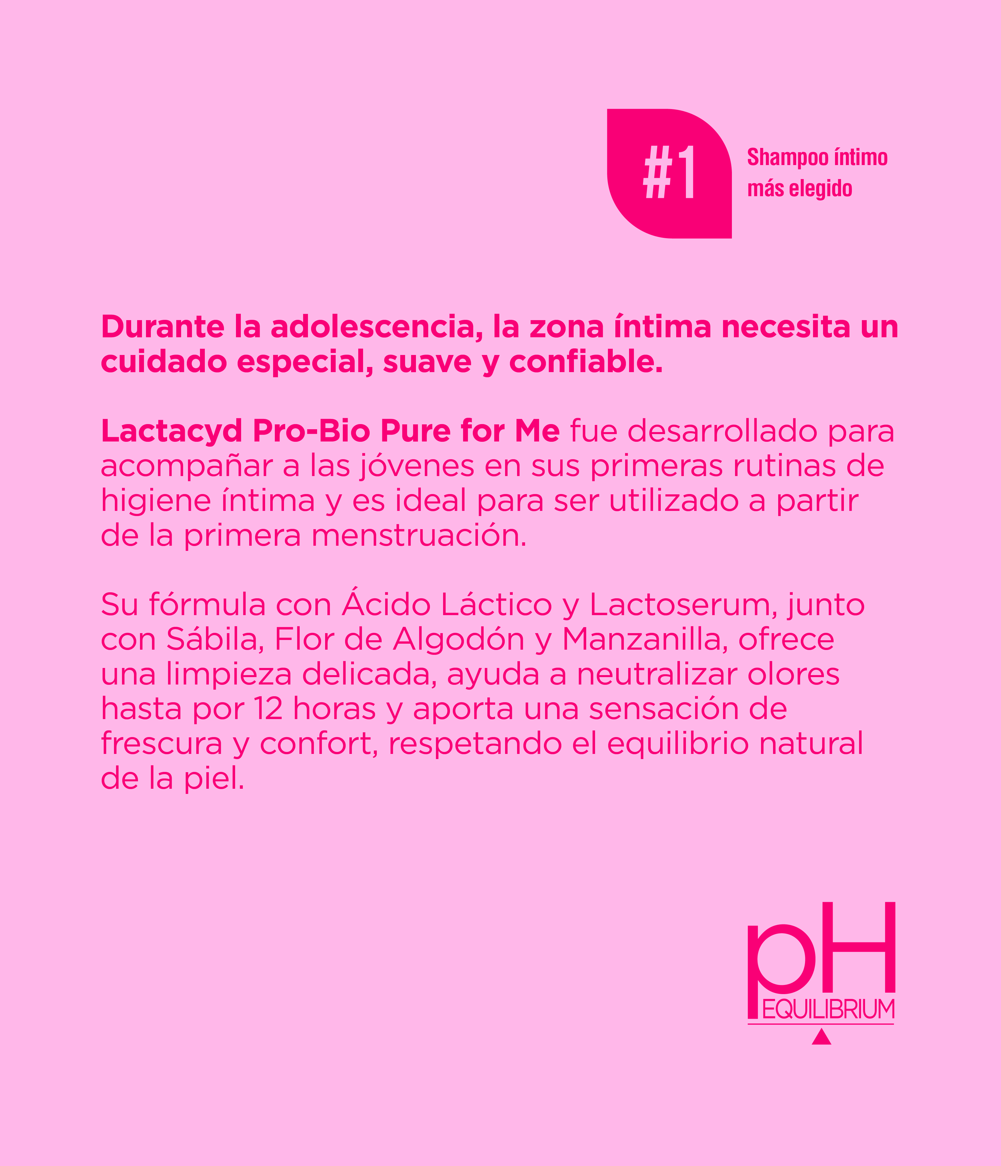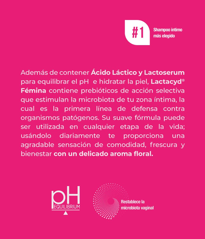 En Lactacyd® entendemos tus necesidades íntimas de higiene y comodidad. Por eso, creamos productos para cada etapa de tu vida, coningredientes naturales y Ácido Láctico que cuidan el microbioma y ayudan a mantener equilibrado el pH de tu zona íntima.